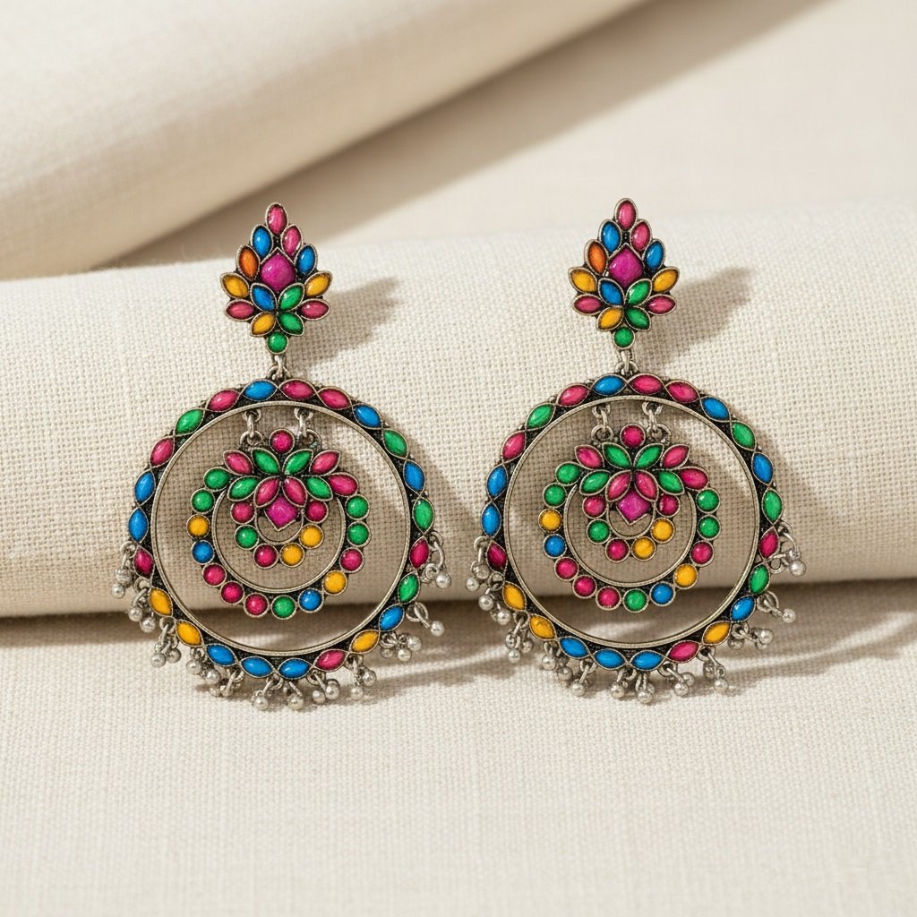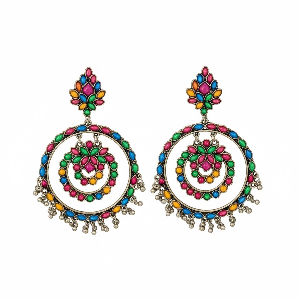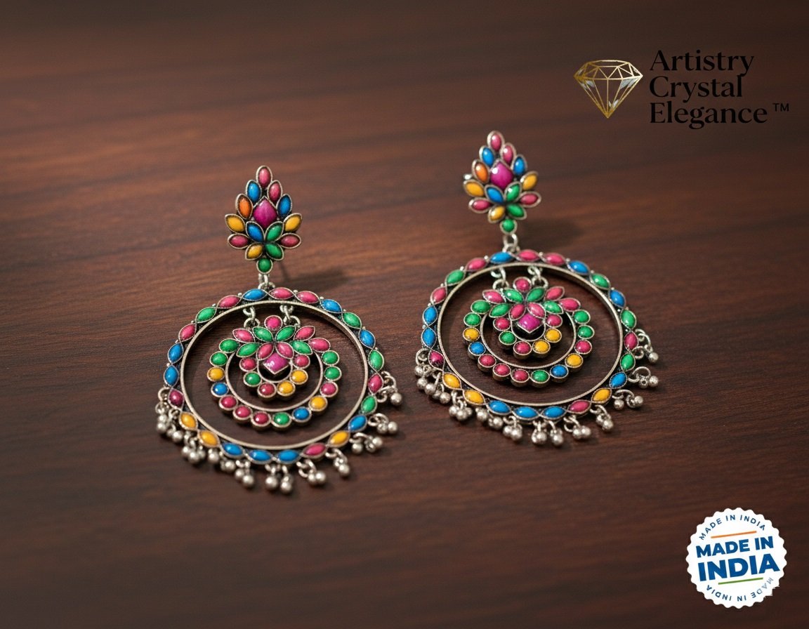 Exclusive Large Multicolor Stones Chandbali Earrings