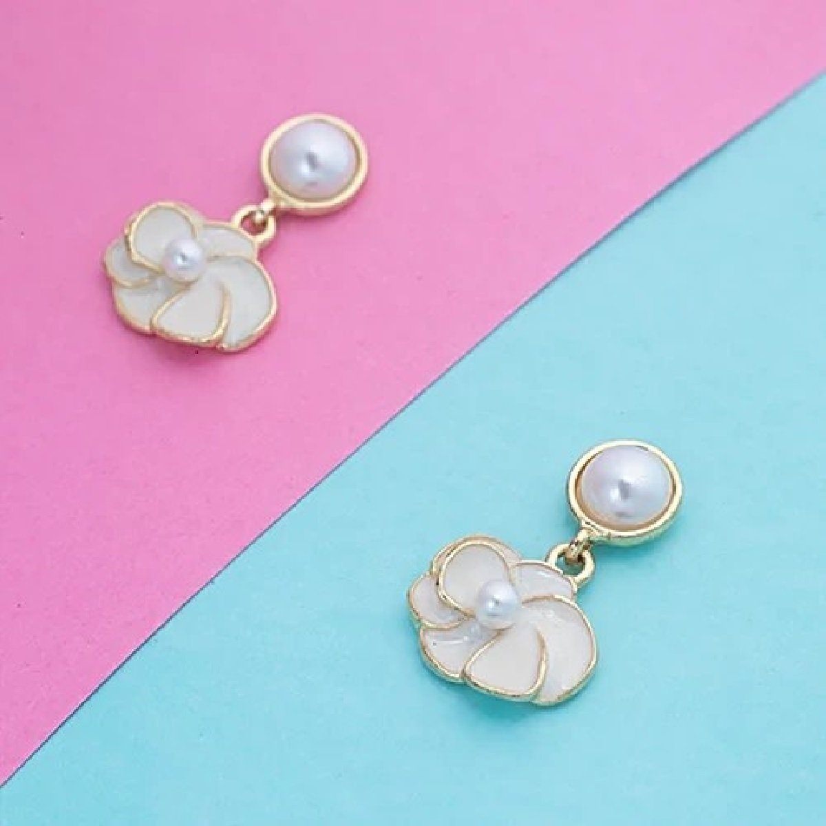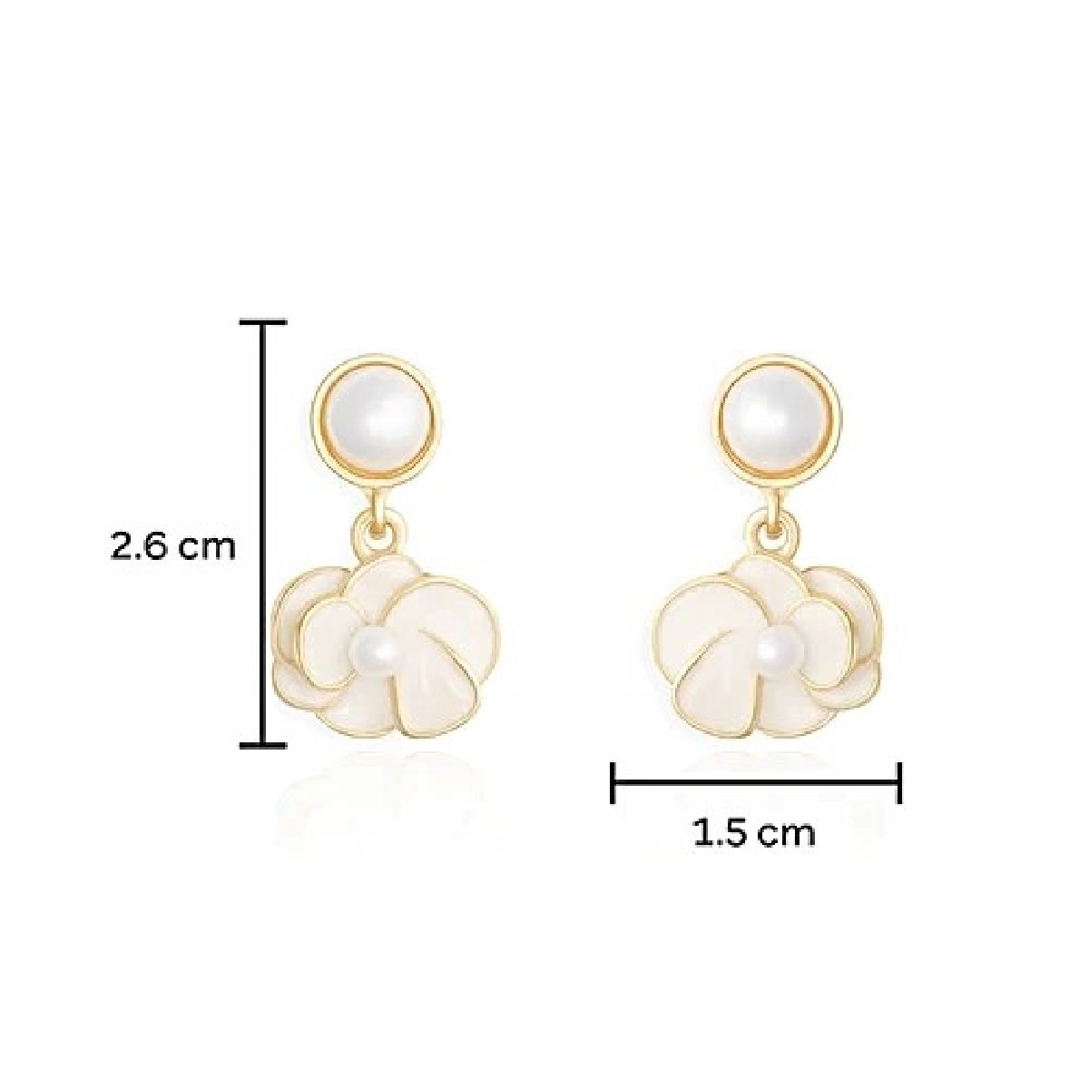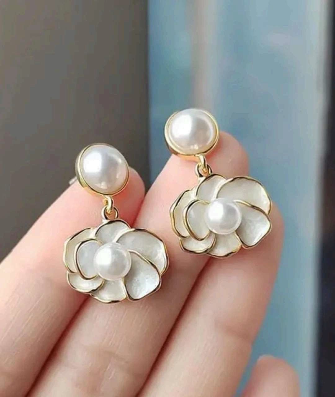 Graceful pearl drop earrings featuring a floral petal design with a soft enamel finish. Lightweight, elegant, and skin-friendly—perfect for festive wear, weddings, or gifting. Add a touch of vintage charm and feminine beauty to your look with these timeless floral studs.
