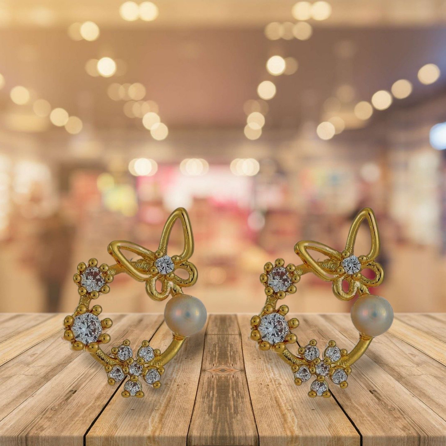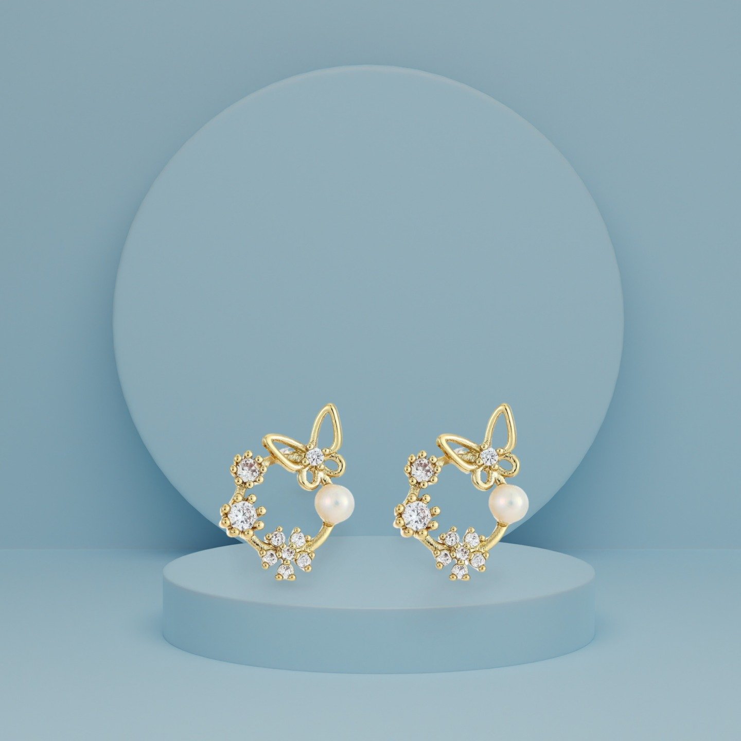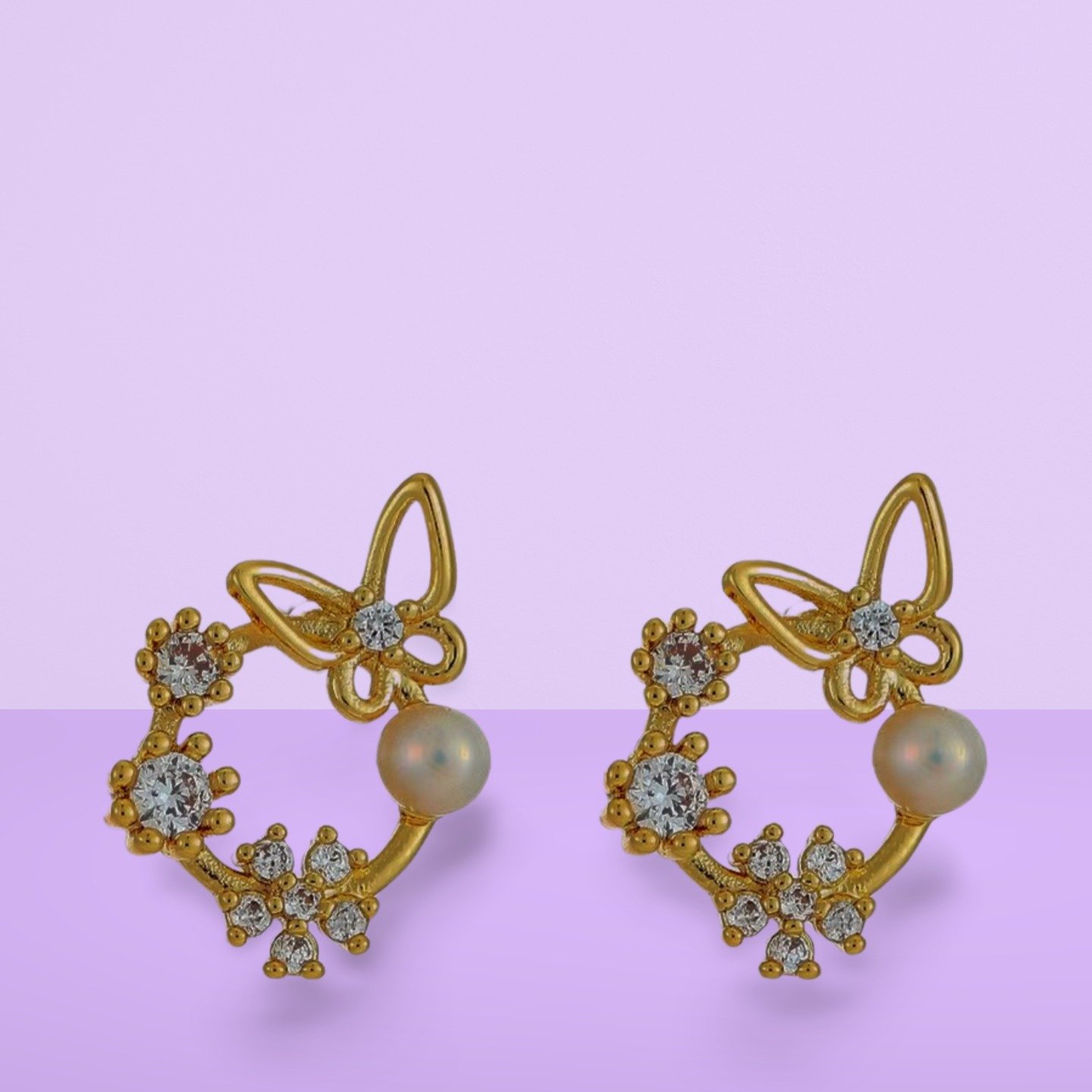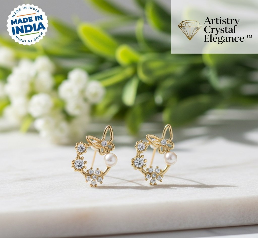 Gold-plated and white contemporary studs, has artificial stones and pearls studded details