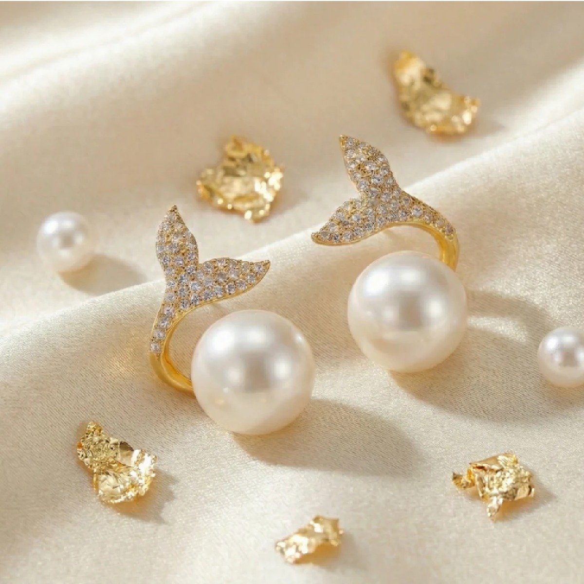 • VERSATILE STYLING OPTIONS: Includes a gold pair with mermaid tail accents and double pearls, plus a silver pair featuring bow designs with mother-of-pearl hearts and crystal-encrusted circles for varied styling choices