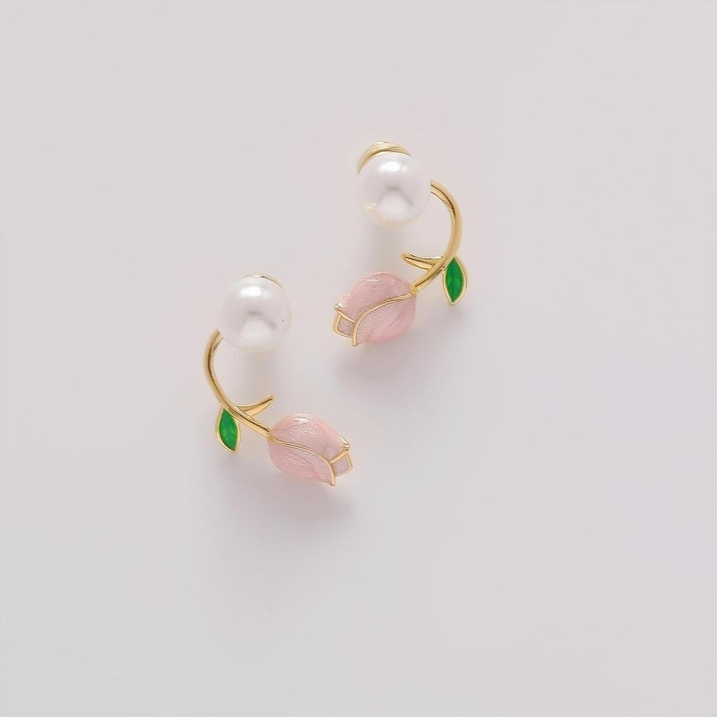 Tulip Earrings for Women Pearl ear